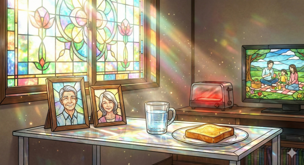 遠く離れた実家の立派な仏壇よりも、あなたの生活の息遣い、トーストの焼ける匂い、テレビの笑い声が聞こえるそのカラーボックスの上を、あの人は「一番落ち着く場所」として愛しているのです。