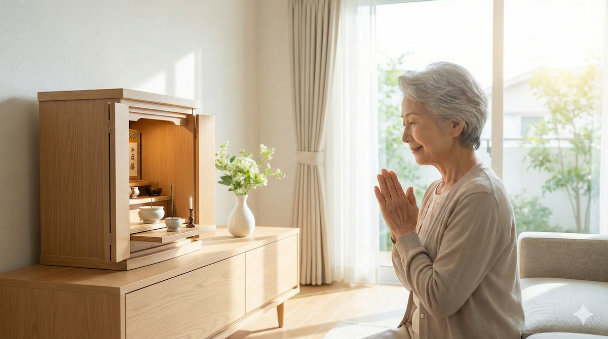 限られた住空間と集合住宅の厳しい防火ルール(消防法および管理規約)を遵守しながら、煙や火気に依存せず、LED仏具や超微香性の香り、あるいは心の対話を通じて、故人との精神的結びつきを維持・深化させる現代の礼拝形式。
