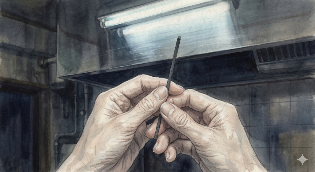 換気扇の下、無機質なレンジフードのライトに照らされ、あなたは火のついていない一本のお線香を握りしめたまま、立ち尽くしているのではないでしょうか。