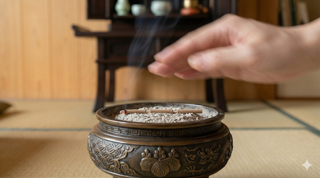 お線香は「お宅のものを少しお借りいたします」と声をかけ、その家が紡いできた香りと空気に、あなた自身が優しく溶け込ませてもらう。それこそが、嫁としての出しゃばらない、粋な振る舞いなのです。