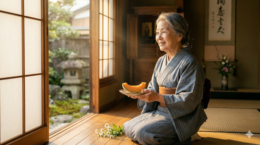 芳醇で甘い香りが、仏間いっぱいに広がりました。私は仏壇の前に座り、「お母さん、一番好きなメロンだよ。ゆっくり、心ゆくまで食べてね」と語りかけました。