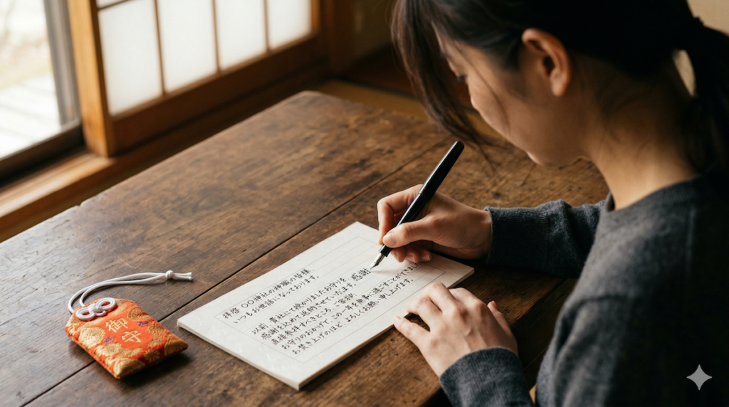 - 同封するもの: お守り本体と、簡潔に感謝を記した「添え状(一筆箋)」。