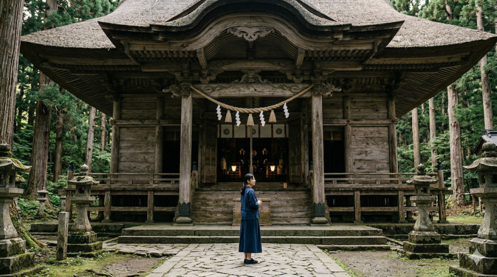 頭の中はパニックになり、予習したはずの四拍手のタイミングがわからなくなりました。手が震え、冷や汗が背中を伝います。結果として、私はまともに手を合わせることも、心の中で感謝を述べることもできず、ただ神様の前で呆然と立ち尽くし、逃げるようにその場を後にしてしまいました。(※当時の情けない私の姿は、以前の記事の画像でもご紹介した通りです)。
