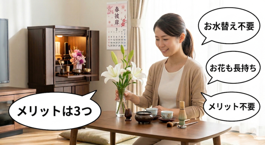 仏壇にお花を飾るのは、仏様の慈悲を象徴し、私たちの心を穏やかにするためと言われています。 もし、毎日のお花の手入れが「苦行」になり、仏壇の前に立つたびに「申し訳ない」とため息をついてしまうのだとしたら……。