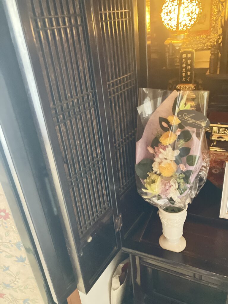 本当は、いつも綺麗なお花で飾ってあげたい。でも、体力が追いつかない。